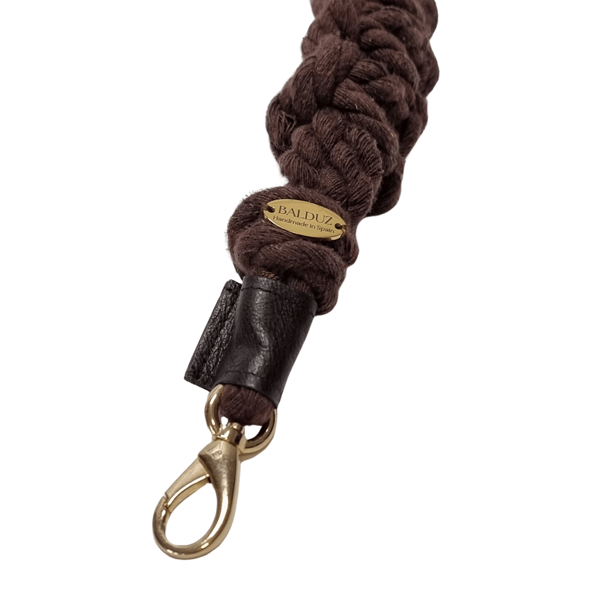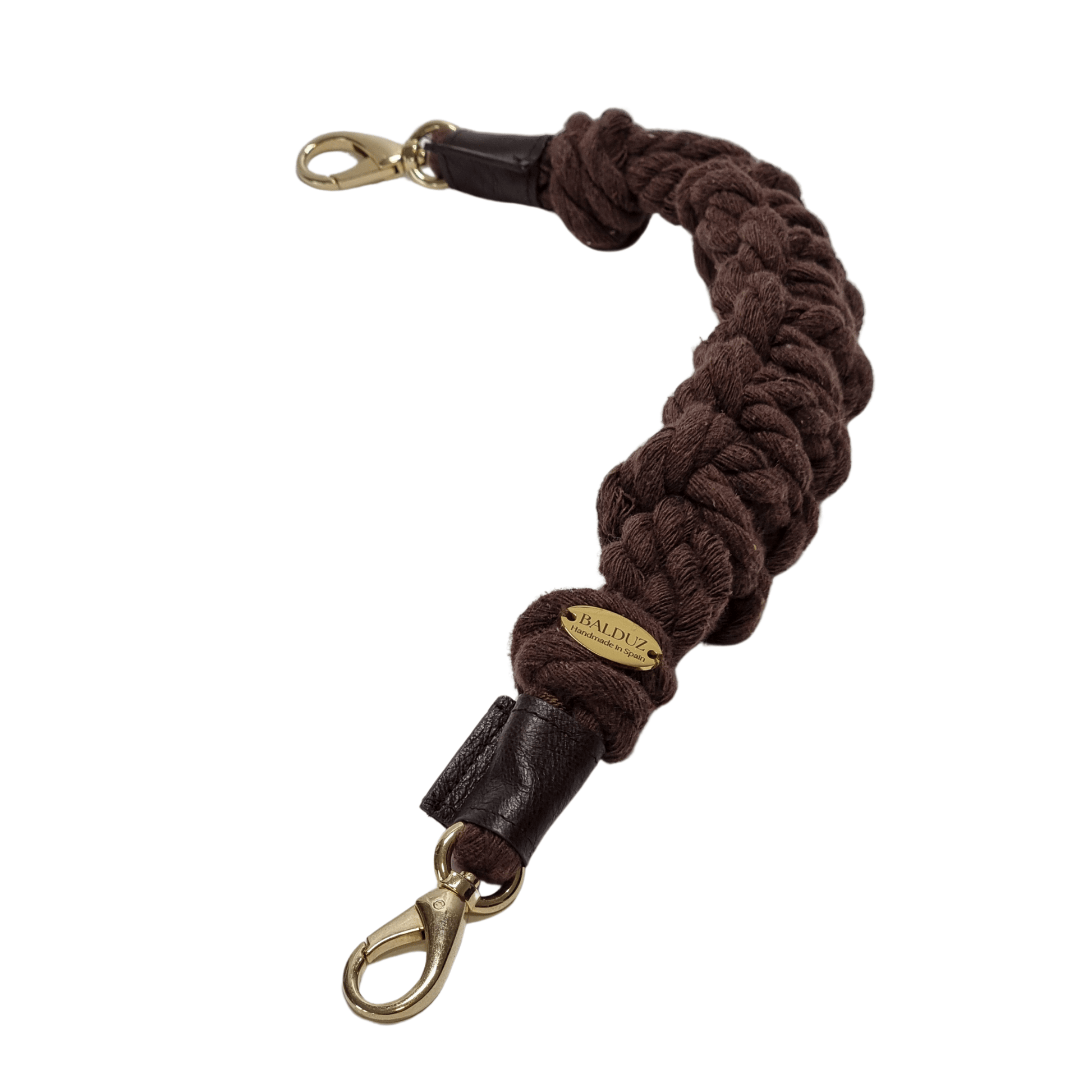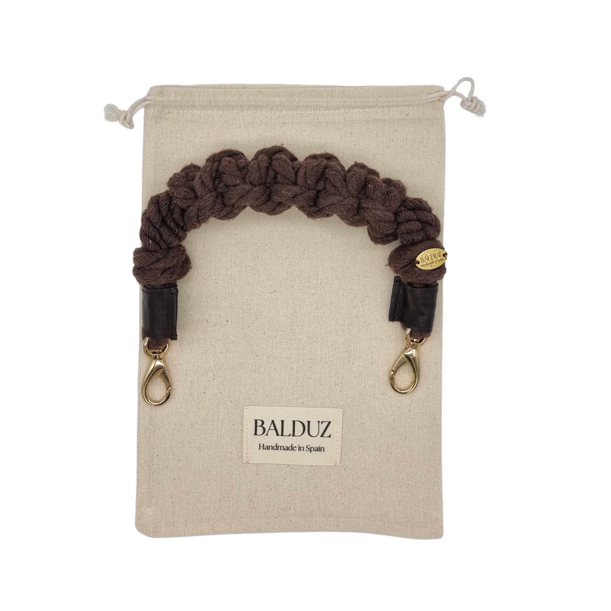 Hecha a mano con cordón 100% algodón, sus extremos de retales de piel de Ubrique y mosquetones fabricados en Alicante garantizan calidad y durabilidad.