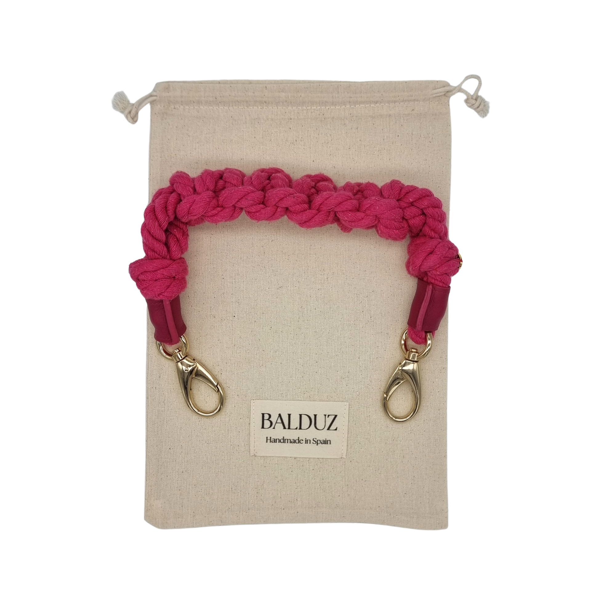 Hecha a mano con cordón 100% algodón, sus extremos de retales de piel de Ubrique y mosquetones fabricados en Alicante garantizan calidad y durabilidad.