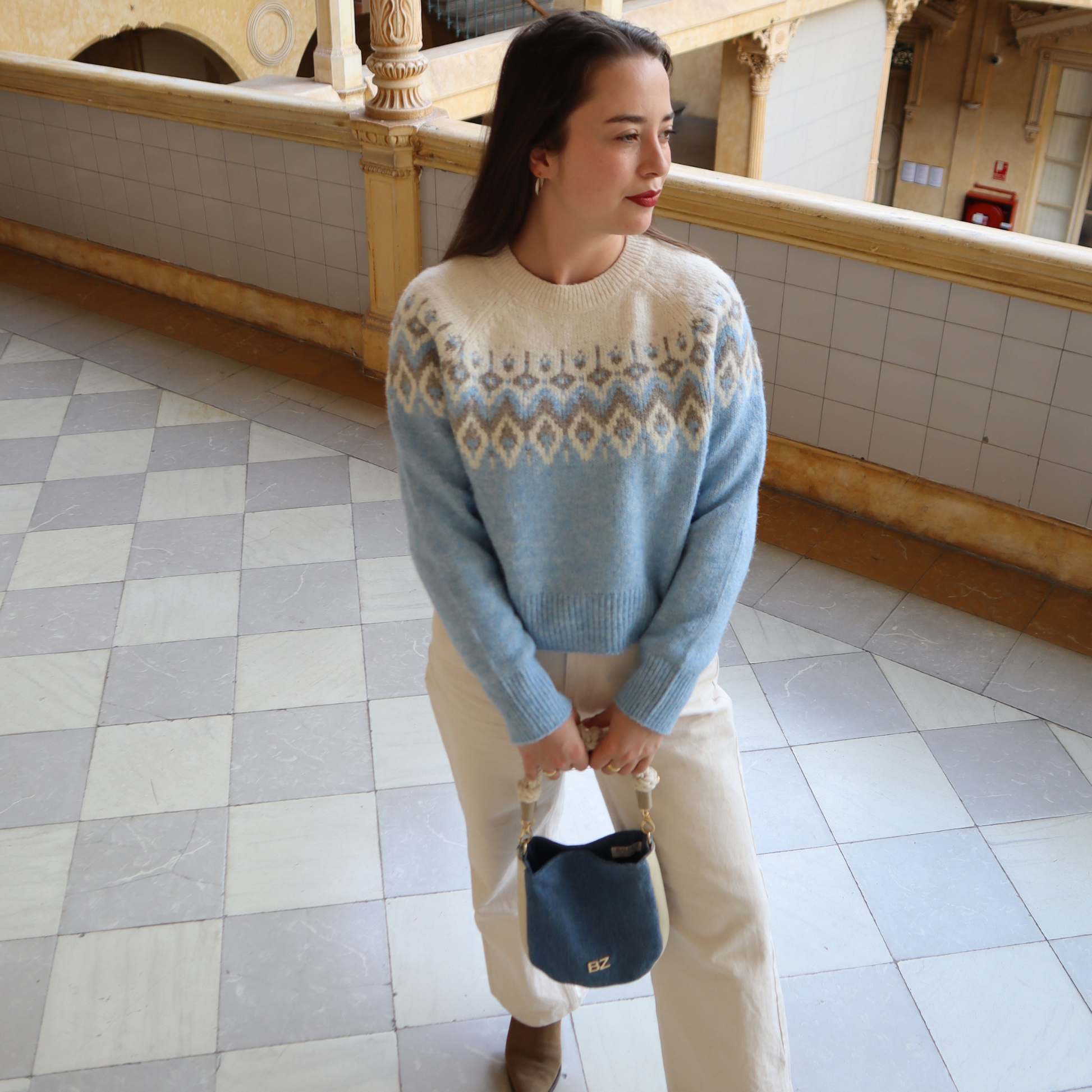 Combinable con tres tipos de asas: denim (incluida), macramé y algodón (no incluidas).