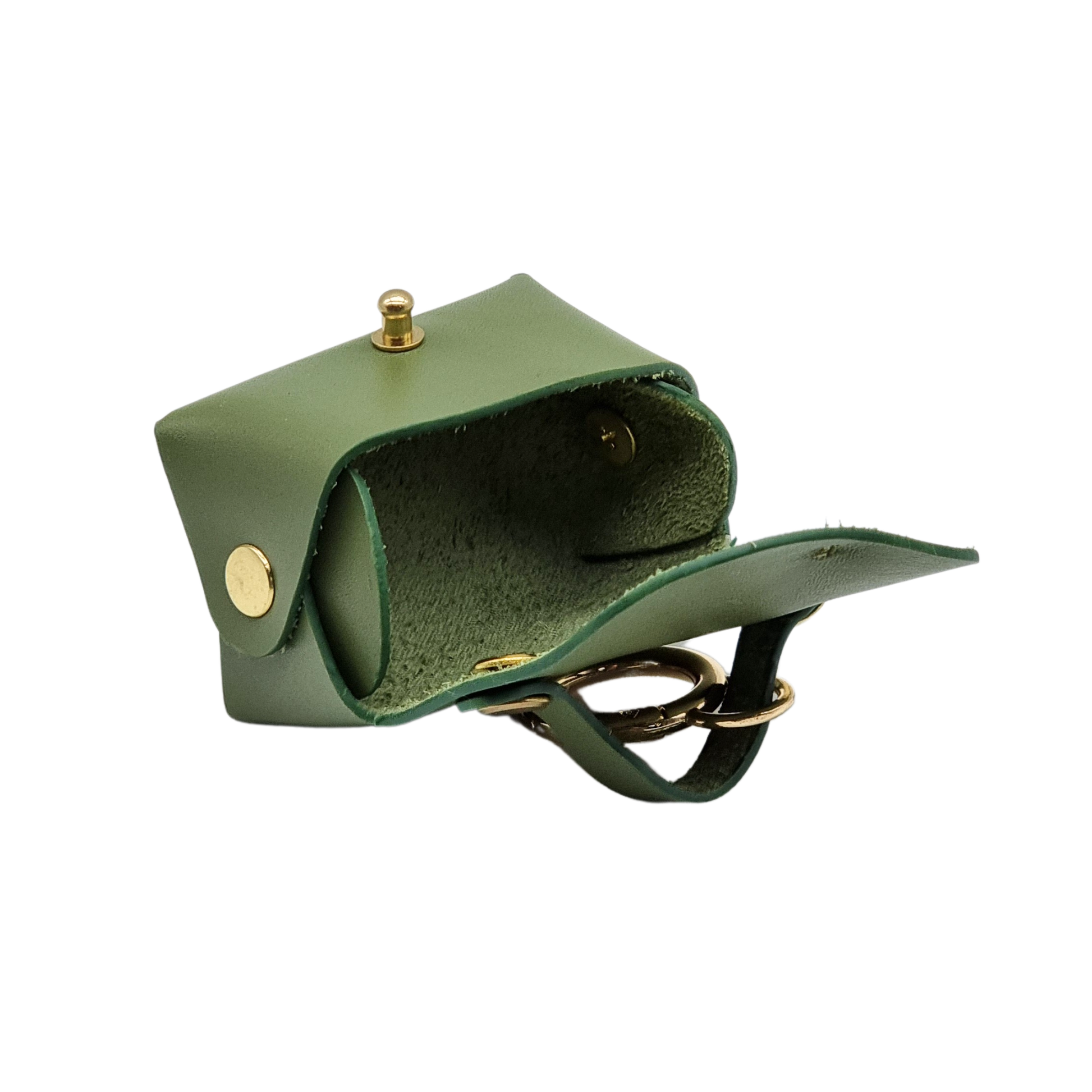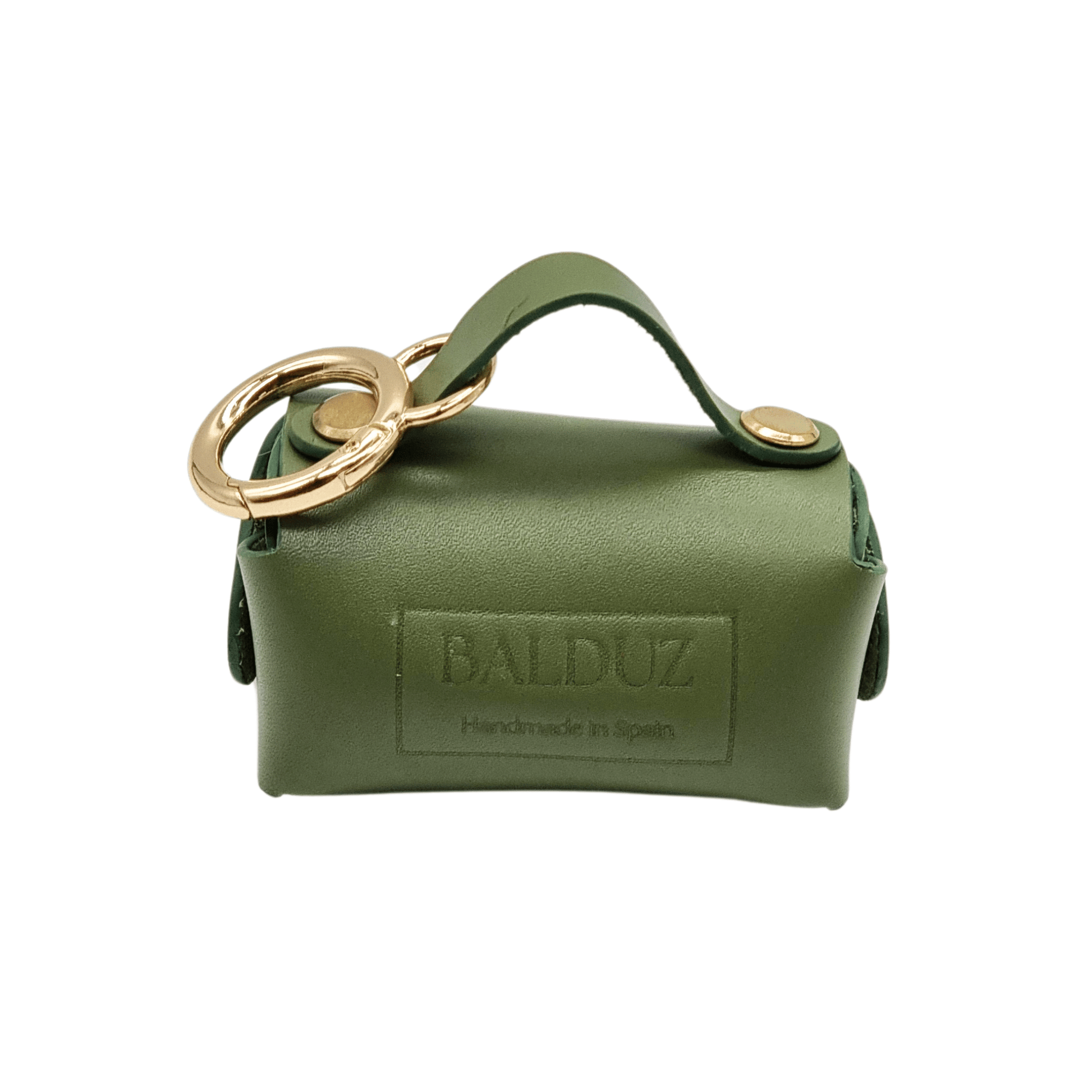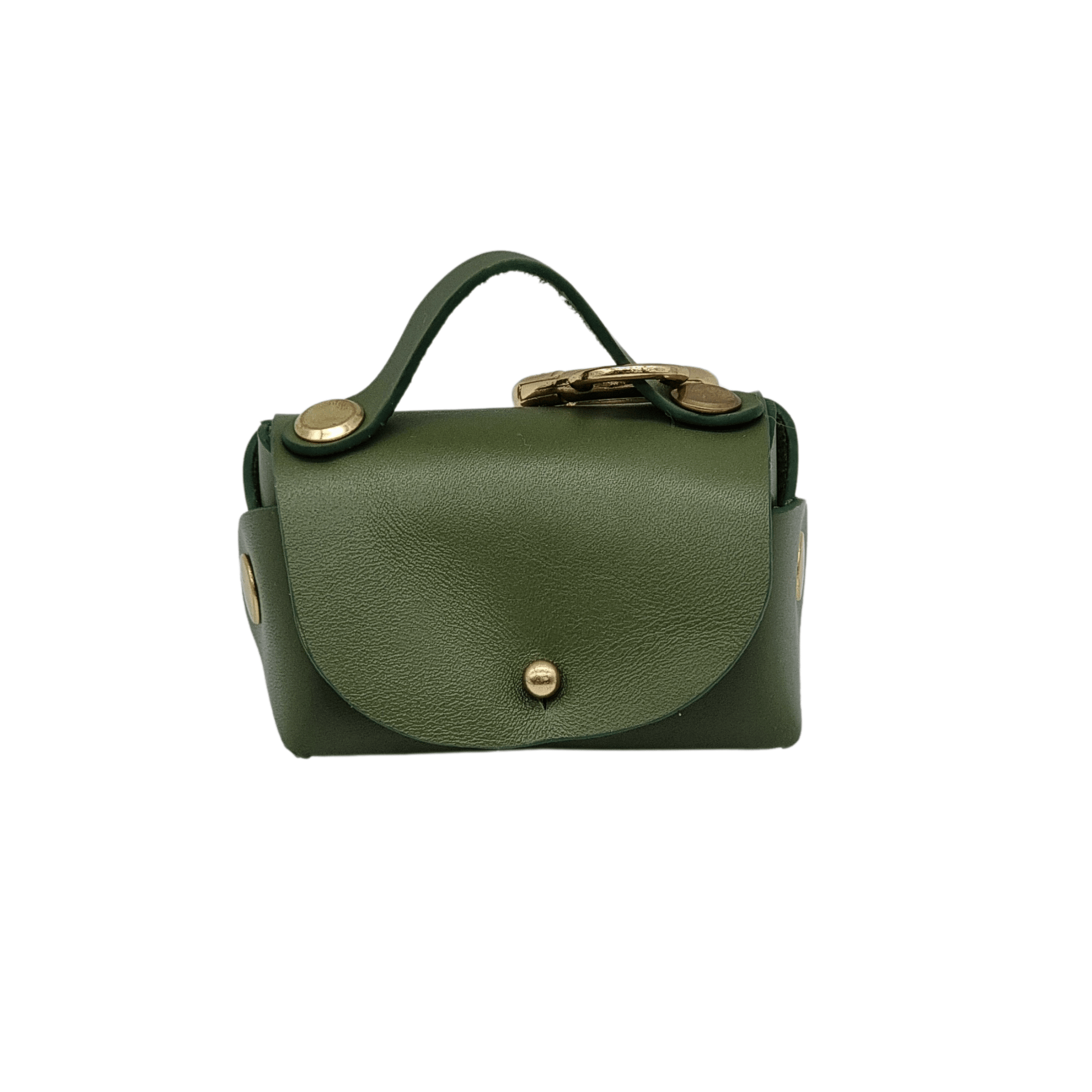 Mini bolso llavero verde de piel rígida recuperada de retales. Cada pieza pasa por un proceso artesanal que garantiza texturas y acabados irrepetibles. Sostenible, versátil y lleno de carácter, es el detalle perfecto para reflejar tu estilo y tus valores en cada paso.