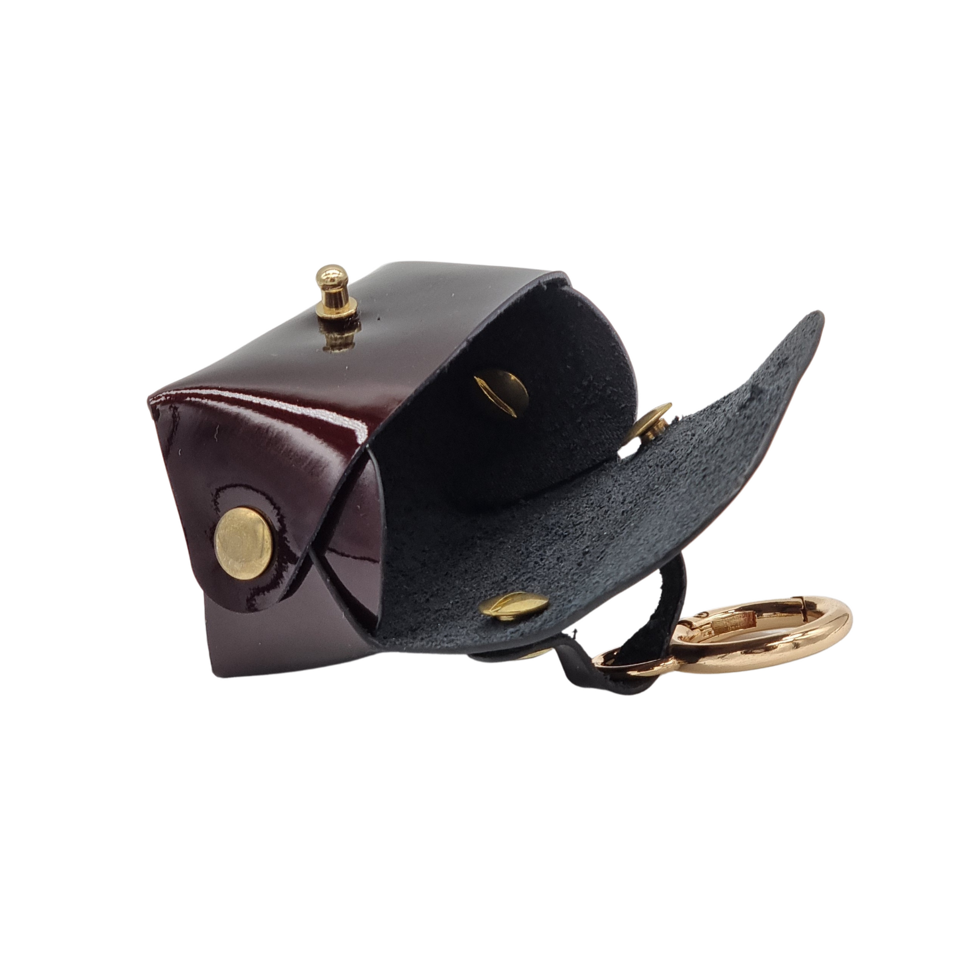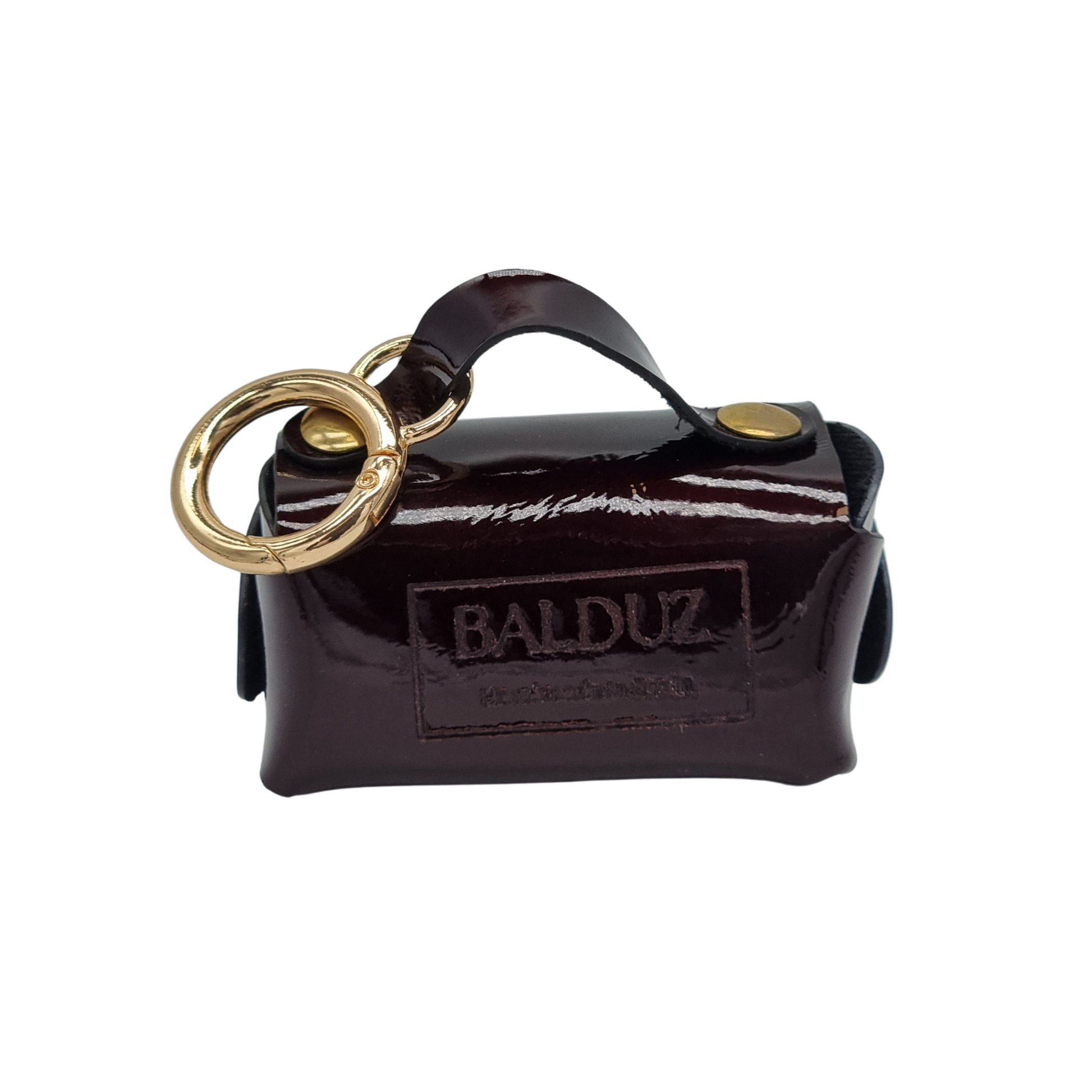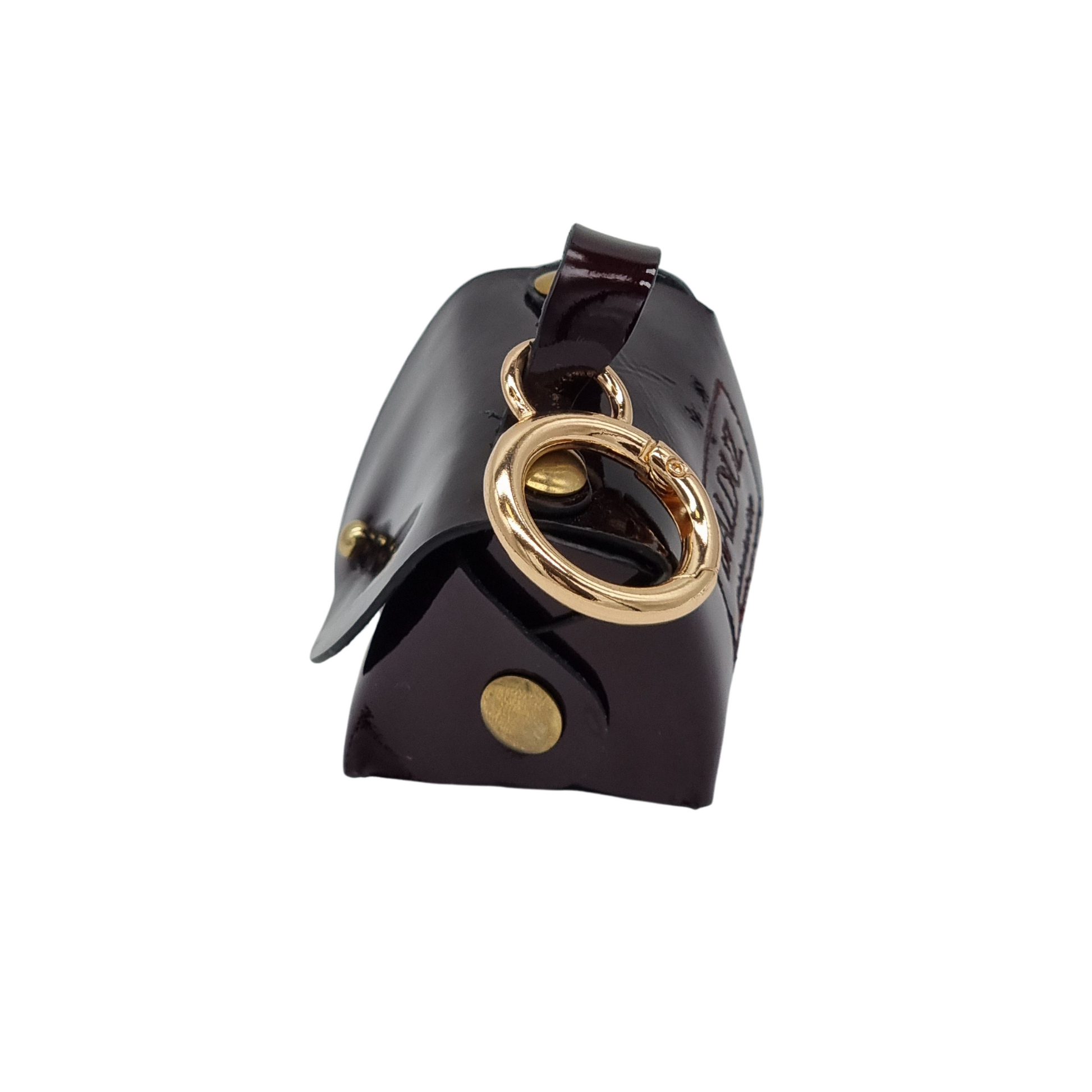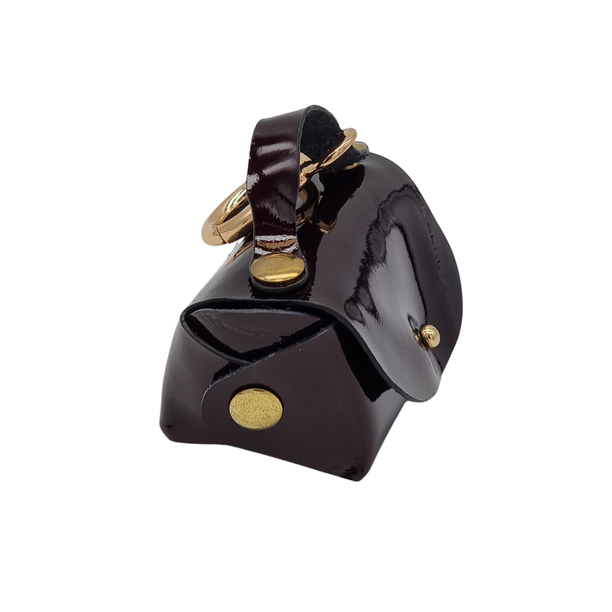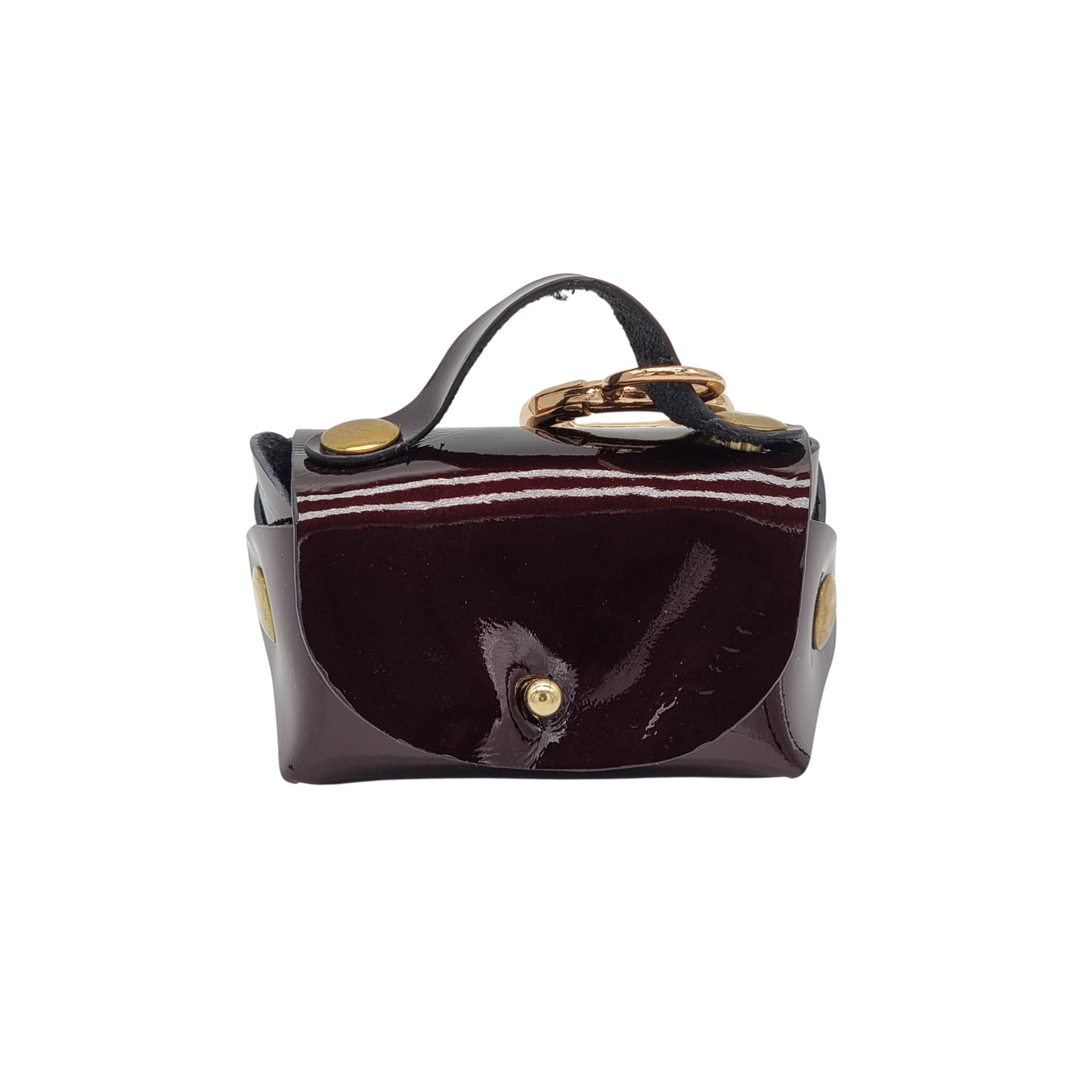 Mini bolso llavero charol granate de piel recuperada de retales. Cada pieza pasa por un proceso artesanal que garantiza texturas y acabados irrepetibles. Sostenible, versátil y lleno de carácter, es el detalle perfecto para reflejar tu estilo y tus valores en cada paso.