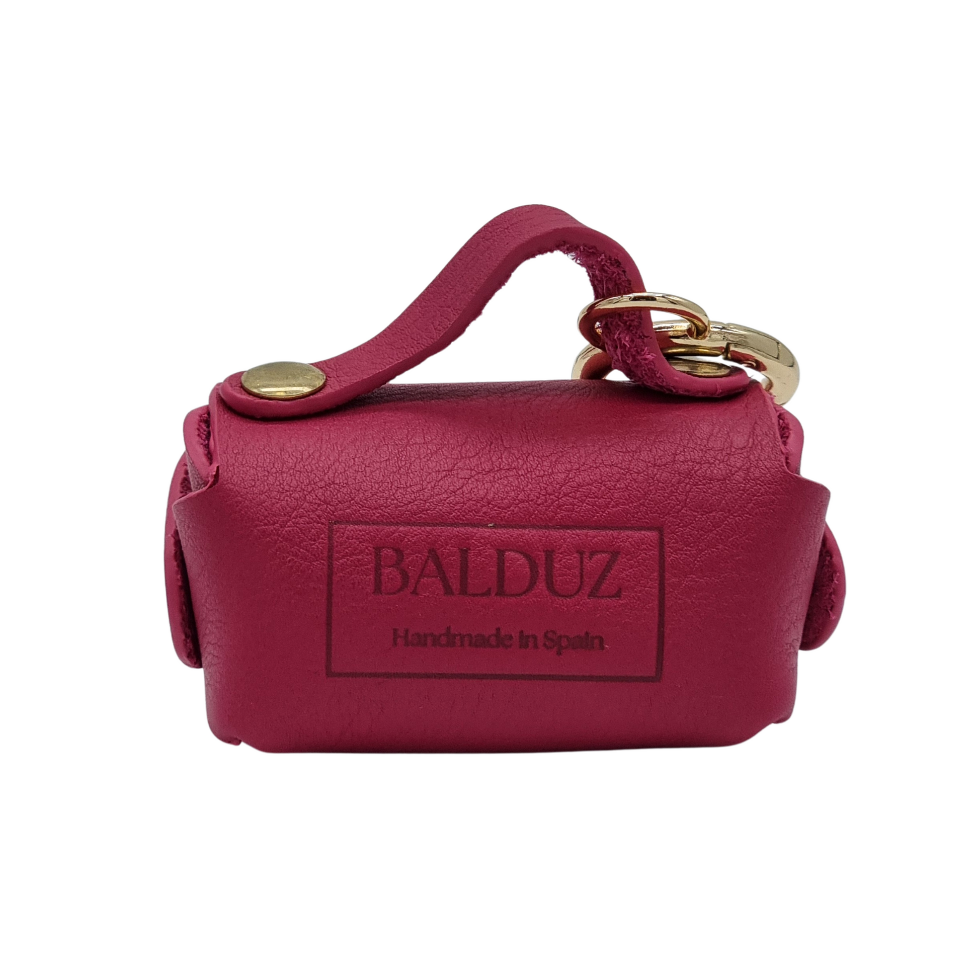 Mini bolso llavero fucsia de piel gruesa recuperada de retales. Cada pieza pasa por un proceso artesanal que garantiza texturas y acabados irrepetibles. Sostenible, versátil y lleno de carácter, es el detalle perfecto para reflejar tu estilo y tus valores en cada paso.