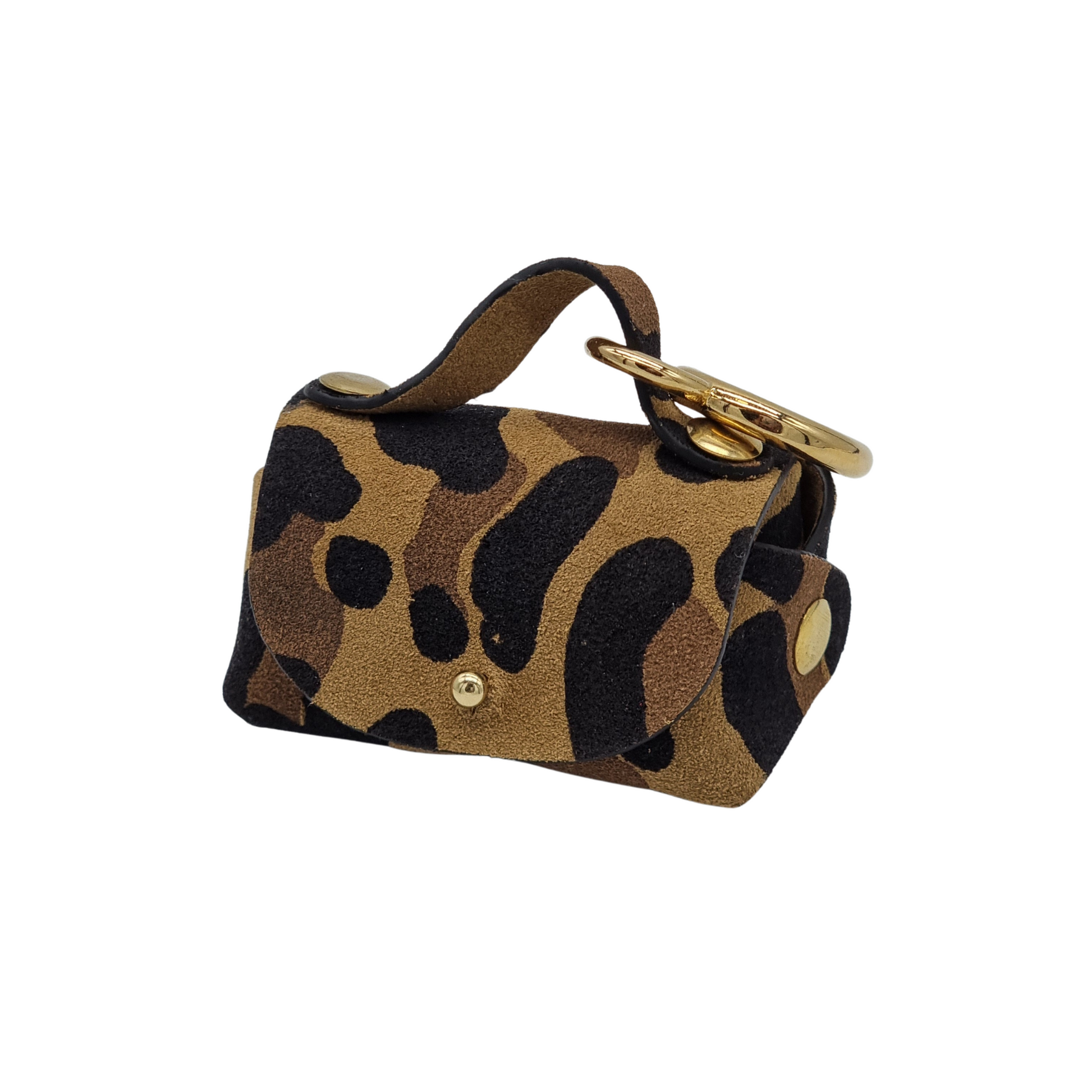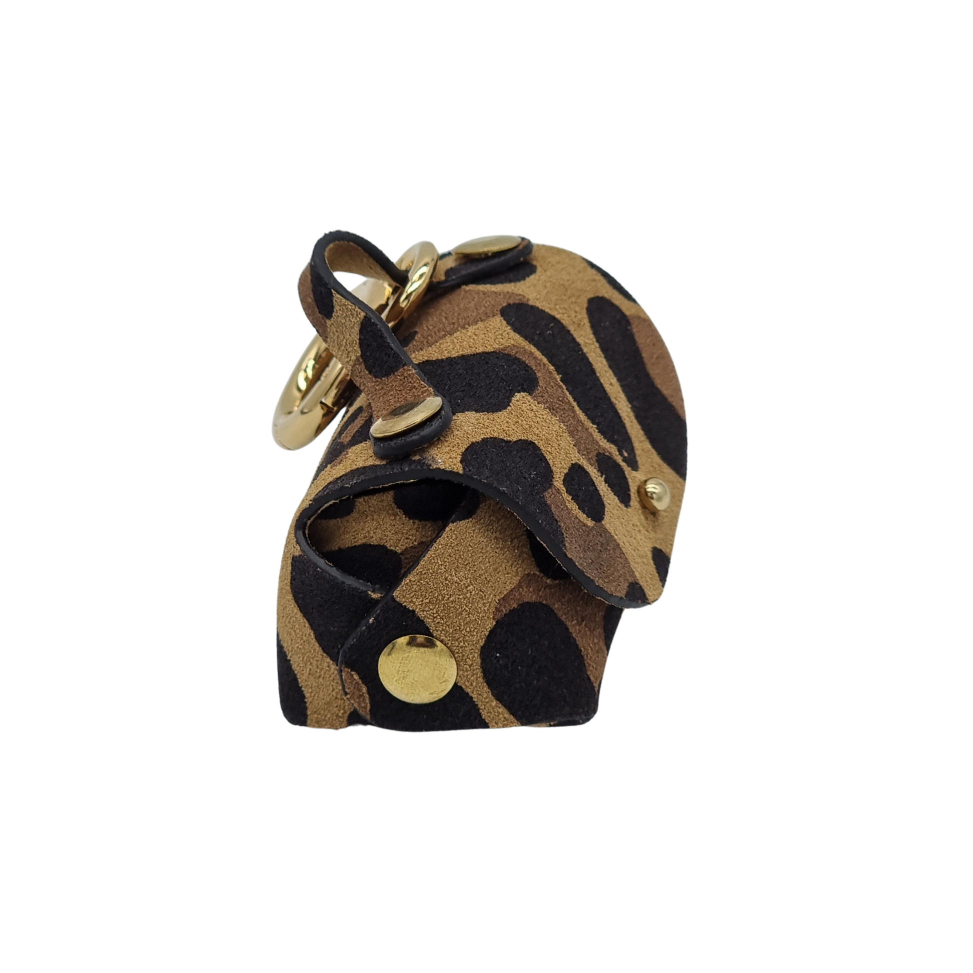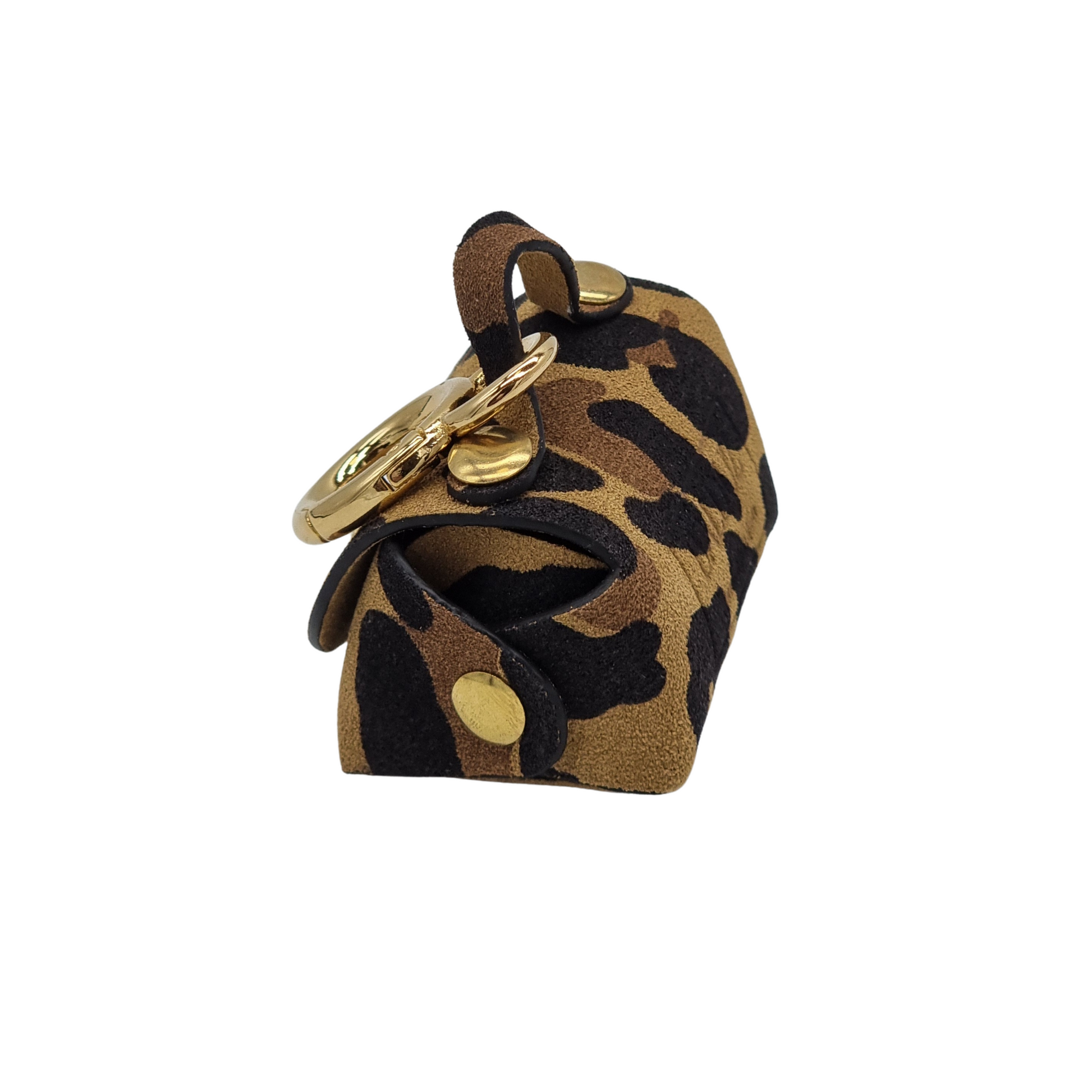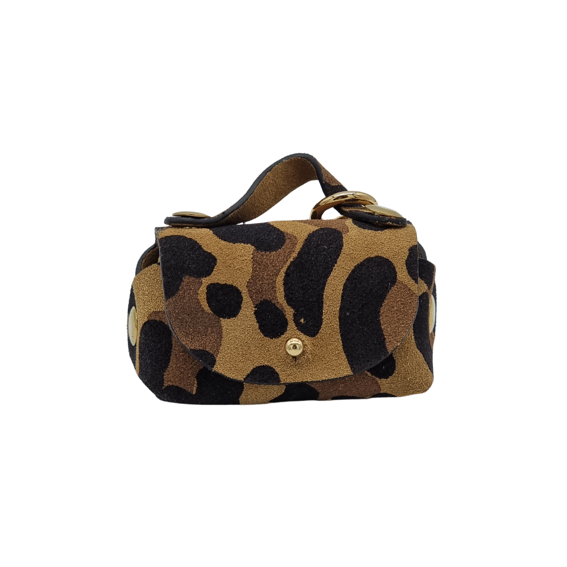Mini bolso llavero con print de leopardo de piel recuperada de retales. Cada pieza pasa por un proceso artesanal que garantiza texturas y acabados irrepetibles. Sostenible, versátil y lleno de carácter, es el detalle perfecto para reflejar tu estilo y tus valores en cada paso.